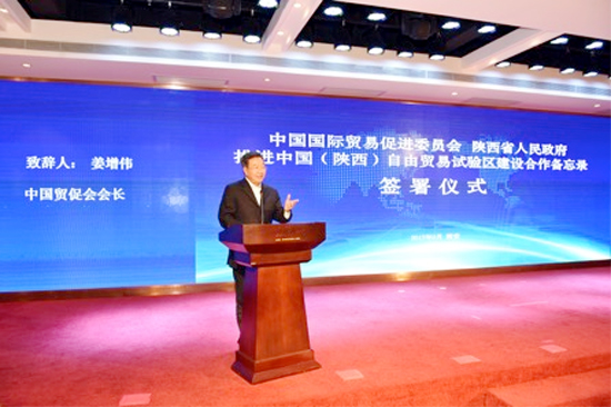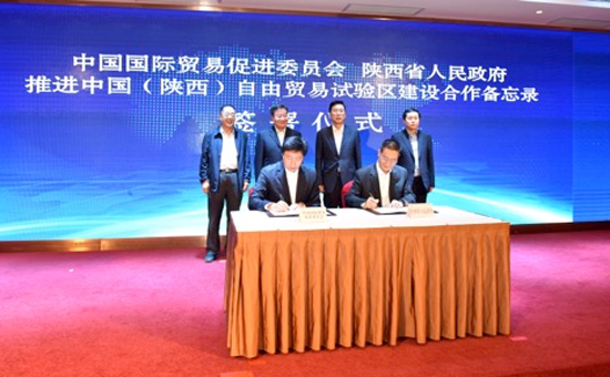 此外,为深入贯彻党中央、国务院关于设立中国(陕西)自由贸易试验区的重大决策部署,发挥各自优势,有效推进自贸试验区建设,当日同时举行了中国贸促会与陕西省人民政府合作备忘录签约仪式。中国国际商会秘书长于健龙、陕西省副秘书长张小宁分别代表中国贸促会、陕西省人民政府签署《关于推进中国(陕西)自由贸易试验区建设合作备忘录》。